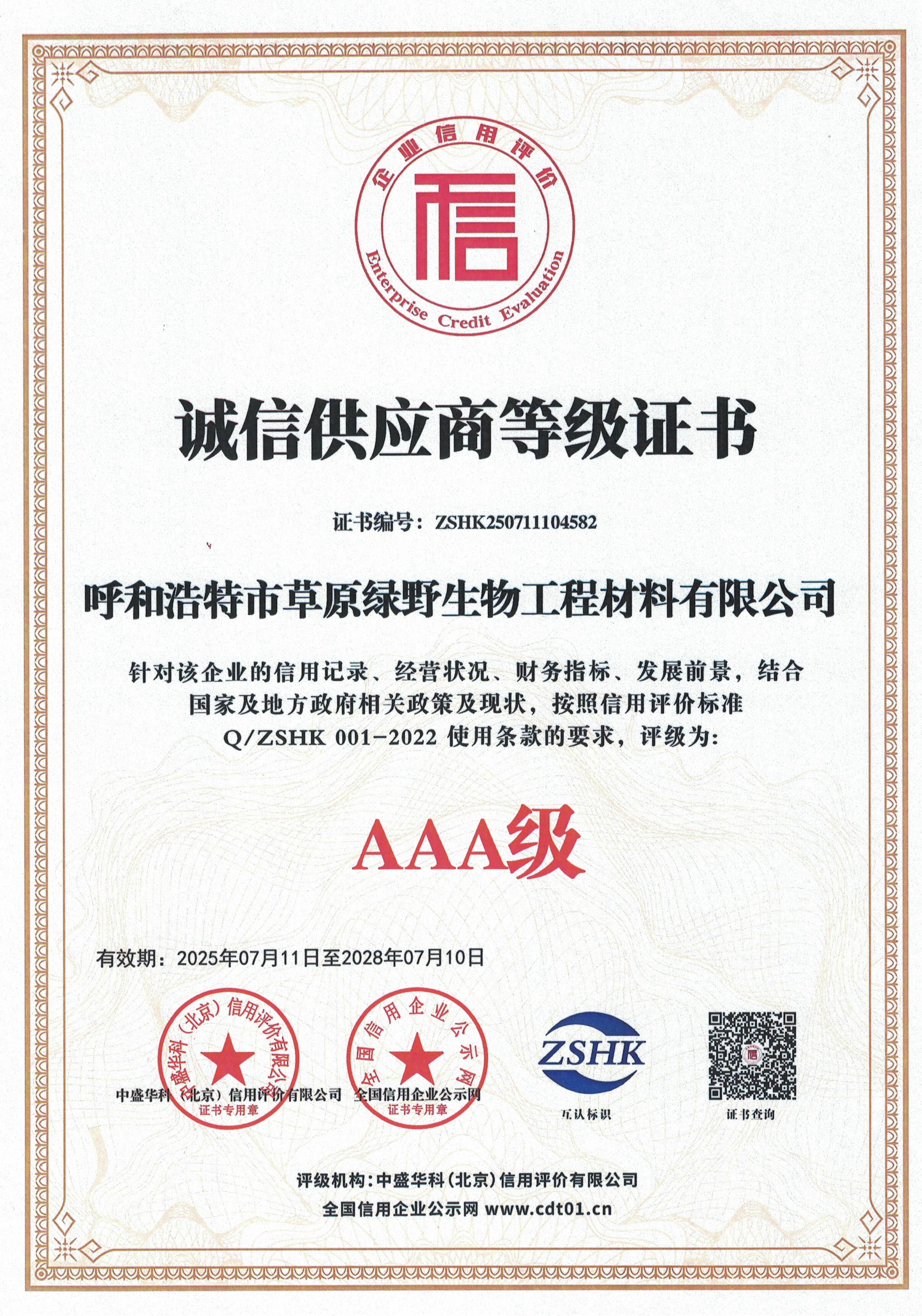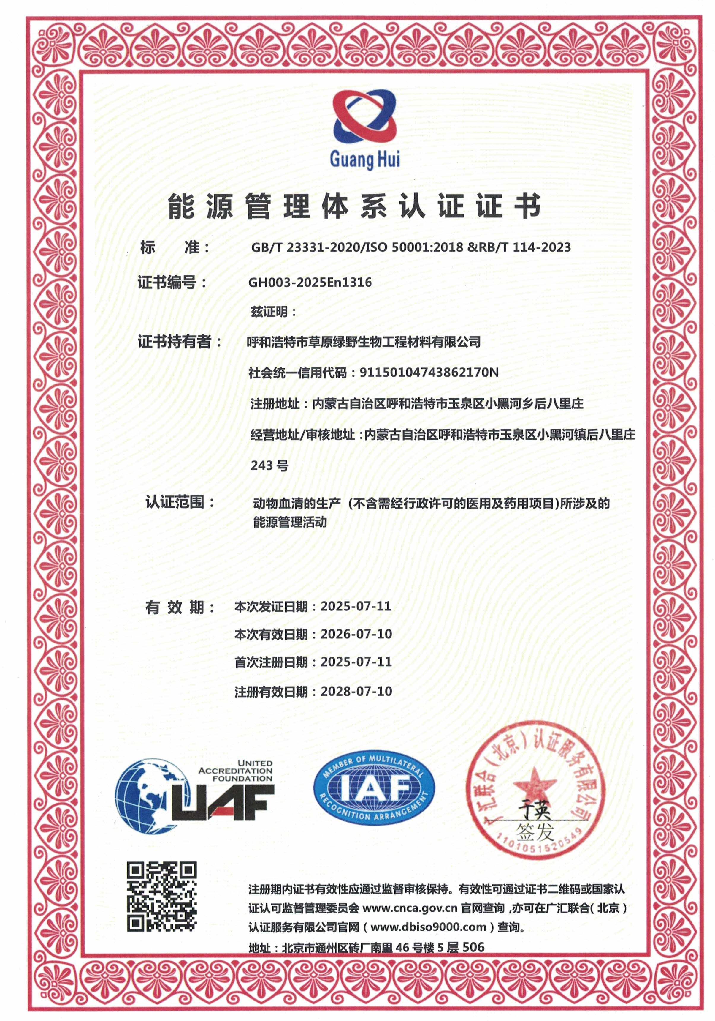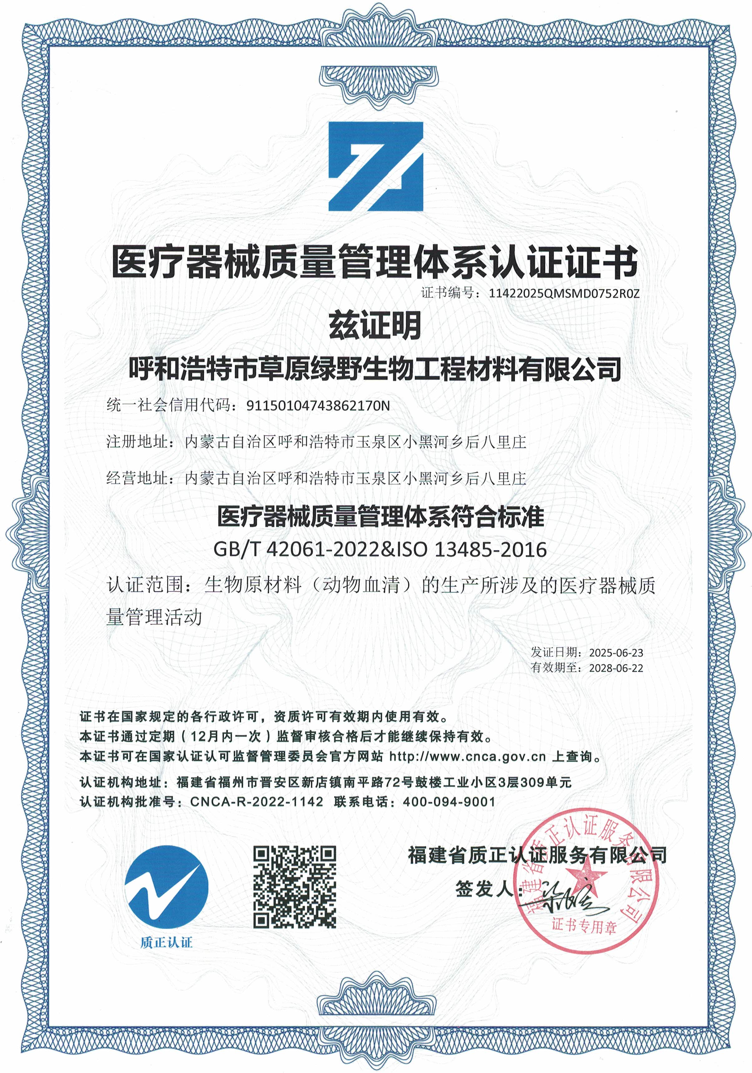 公司至今已多次通過中國醫(yī)藥生物技術協(xié)會《牛血清生產(chǎn)企業(yè)達標》認證、《牛血清生產(chǎn)質量達標企業(yè)》認證。ISO9001質量管理體系認證、ISO45001職業(yè)健康安全管理體系認證、ISO14001環(huán)境管理體系認證、ISO13485醫(yī)療器械質量管理體系認證、ISO50001能源管理體系認證、GB/T29490知識產(chǎn)權合規(guī)管理體系認證、AAA級信用企業(yè)認證、A級納稅單位評審等。